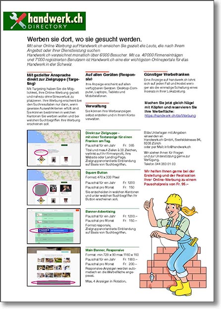 Mit einer Online Werbung auf Handwerk.ch erreichen Sie gezielt die Leute, die nach Ihrem